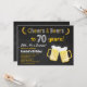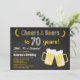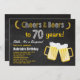 Surprise Cheers and Beers 70th Birthday Invitation. Adult Birthday. Beer Birthday for men. Chalkboard Black and White Background. For further customization, please click the "Customize it" button and use our design tool to modify this template.