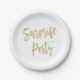 Surprise White and Faux Gold Foil Birthday Party Plates for Surprise Birthday Party Celebration.