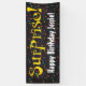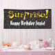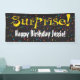Surprise party banner for birthday or other occasion - edit the Happy Birthday text for your message. Colorful confetti background for party atmosphere with the word Surprise! in large fun font in bright yellow.