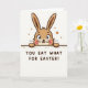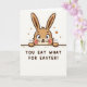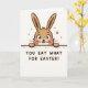 This card shows a tan-brown bunny 🐰 peeking over a straight horizontal line, as if leaning in to share a private joke with a friend. Its long upright ears frame a wide-eyed face with bright blue eyes, tiny lash marks, and soft pink blush on the cheeks that reads like a shy, affectionate surprise. A small open mouth with one tooth adds a gentle, funny gasp, giving the scene a flirty, “caught you looking” kind of charm. The background stays a creamy off-white, keeping the focus on the bunny’s tender, curious expression. Scattered small brown dots float around like light confetti, adding texture without crowding the space 🌷. Centered below the dividing line, dark brown text is set in thick, easy-to-read letters and forms a short, inquisitive question. The bunny remains in the upper half of the layout, while the lower half is mostly open space with the dark brown wording and a few irregular dots.