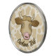 Surprised Cow's head illustration. Seamless cow pattern background. Custom text.
