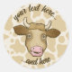 Surprised Cow's head illustration. Seamless cow pattern background. Custom text.
