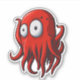 A whimsical, cartoon red squid caught in a moment of sheer surprise. Its vibrant red body instantly captures attention, while its large, round eyes widen with astonishment, accentuated by raised eyebrows that further emphasize its startled expression.