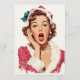 This charming vintage-style Christmas pin-up features a surprised woman in a festive Santa outfit, complete with soft fur trim and a playful bow. Her expressive pose and classic retro aesthetic create a warm, nostalgic holiday vibe. Perfect for seasonal products like apparel, mugs, cards, décor, and gifts that celebrate timeless Christmas cheer.