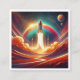 surreal art design with vibrant colors, depicting a rocket launching into space. Perfect for inspiring a sense of wonder and exploration, this design combines bold surrealism with imaginative cosmic elements to create a captivating and dreamlike visual.