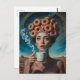 A surreal woman with donuts on her brain holding a steaming coffee AI generated