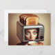A woman with a toaster on her head sipping coffee surreal breakfast art