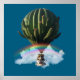 Surreal Cat Hot Air Balloon with Cactus & Rainbow Poster