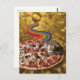 Surreal Cat on a Pizza Golden Rainbow Background Postcard