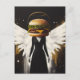 A surreal cheeseburger angel woman with her head replaced by a cheeseburger fantasy art