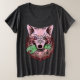 Bold wolf illustration with surreal flair—pink and red fur, piercing mismatched eyes, and a macabre twist as it clenches a zombie hand. A vivid, symbolic design perfect for fans of dark fantasy art and statement merch