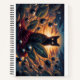 Surreal Cosmic Cat with Glowing Eyes and Stars Notebook