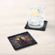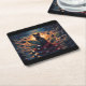 Surreal Cosmic Cat with Glowing Eyes and Stars Square Paper Coaster