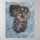 "There Was a Crooked Man..." This striking abstract artwork features an intricate fusion of geometric and organic forms, intertwining to create a surreal, mask-like visage. Earthy hues of beige, red, and slate blue contrast with bold black outlines, evoking an ancient yet futuristic aesthetic. The crumpled, textured background adds depth, enhancing the piece’s weathered yet timeless appeal. A mesmerizing balance of structure and fluidity, this design captivates with its maze-like complexity and expressive character.