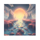 A beautiful surreal landscape with a large full moon rising over a pretty blue river. Ai art depicting a beautiful otherworldly landscape with a dreamlike quality.