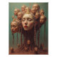 "This surreal digital painting features a mesmerizing arrangement of faces, connected by flowing, braid-like structures. The golden conical crowns add a touch of enigmatic elegance to the composition. With its dreamy aesthetic and intricate details, this poster is sure to spark conversation and add a unique artistic flair to your home or office."
