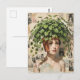 A beautiful woman with a plant in a pot as her head surreal fantasy art in the style of a mixed media collage