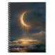 Surreal Golden Crescent Moon Above Ocean Notebook