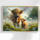 Surreal Highlander Cow With Calf Fantasy Landscape Poster
