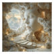Step inside a monumental marble head whose closed eyes shed frozen tears, revealing a vast, cracked interior lit by warm golden light. A sweeping staircase spirals upward toward an open mouth framing a dreamy sunrise sky of soft peach, rose, and blue clouds. Tiny architectural elements—doorways, lanterns, railings, and a symbolic key—nestle into the stone, evoking hidden inner worlds, subconscious exploration, melancholy beauty, and transcendent wonder. Perfect for meditation rooms, bedrooms, therapy offices, creative studios, modern living spaces, or as deeply meaningful gifts for dreamers, introspective souls, psychologists, artists, or anyone drawn to surreal symbolism and emotional depth.