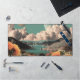 Surreal Mountain Landscape with Planets and Clouds Desk Mat