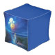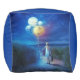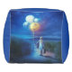 Amazing art design of a starry night sky. A little girl with golden pigtails is walking with an old suitcase in one hand and glowing balloons in the other. Each of the balloons depicts a separate planet in the solar system. This is an image showing the forward looking future this little kid has of where she is headed.