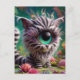 Surreal One Eyed Zebra Kitty Peacock Eyelashes Postcard