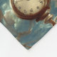 Fun fleece blanket features surreal AI generated pattern of Steampunk style vintage floating pocket watches on sky background