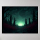 Surreal Retro Farm Landscape with Rocket Launch Ar Poster