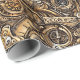 Fun gift wrap features surreal AI generated pattern of Steampunk style gears and timepieces.