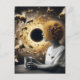 All rights reserved © Angelandspot A woman has a cup of tea in her hand as a black hole above her in the sky is filled with bees and her head is a honeycomb surreal fantasy art in black and white