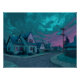 Surreal Teal Twilight Suburb Scene Poster