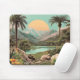 Surreal Tropical Lake With Palm Trees Mouse Pad
