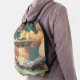 Surreal UFO Above Mountain Lake with Planets Drawstring Bag