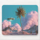 Surreal UFO and Palm Tree Mountain Scene Mouse Pad