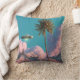 Surreal UFO and Palm Tree Mountain Scene Throw Pillow