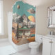 The contrast between familiar elements—a vintage house, a parked car, solitary trees—and the cosmic presence overhead creates a powerful sense of intrigue and narrative. The warm earth tones of the land blend seamlessly with cool skies and surreal planetary forms, giving the artwork a timeless retro-futuristic atmosphere. It feels like a paused scene from a dream, a sci-fi story, or an alternate reality where the unexpected feels strangely calm.