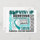 You did it. You survived Cervical Cancer. Celebrate your victory with our Cervical Cancer Survivor t-shirts, apparel, merchandise, and gifts featuring the word SURVIVOR in a hodgepodge of text fonts arranged in an eye-catching square pattern. A grunge-style teal and white Cervical Cancer support ribbon completes this striking design which is sure to catch the attention of those around you as you announce your accomplishment and promote Cervical Cancer awareness. Also makes a perfect gift idea for any new Cervical Cancer survivor or a survivor anniversary.