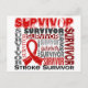 You did it. You survived Stroke. Celebrate your victory with our Stroke Survivor t-shirts, apparel, merchandise, and gifts featuring the word SURVIVOR in a hodgepodge of text fonts arranged in an eye-catching square pattern. A grunge-style red Stroke support ribbon completes this striking design which is sure to catch the attention of those around you as you announce your accomplishment and promote Stroke awareness. Also makes a perfect gift idea for any new Stroke survivor or a survivor anniversary.