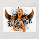 You are a Leukemia survivor. Wear your Victory proudly with our eye-catching Cancer Survivor t-shirts, merchandise, and apparel featuring a striking orange Leukemia awareness ribbon centered within a pair of distressed wings, a graffiti-splashed background, and grunge text. Empowering gift idea for the Leukemia survivor in your life or for a survivor anniversary.