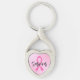 Breast cancer "Survivor" heart shaped keychain features custom modern black script lettering with symbolic pink ribbon and pink gradient background.