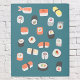 Delicious Japanese sushi art on a teal green background. Original art by Nic Squirrell.