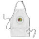 The apron is of very good quality. I used it while icing cookies. The dark colored icing washed off of the apron very well! The neck strap is sturdy and easy to resize on the adult size apron. The print was clear and well defined. I am glad I was able to personalize with name.
