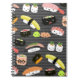 A kawaii assortment of happy sushi friends, including salmon, tuna, tamago, shrimp, octopus, wasabi and ginger. This fun foodie notebook is great for note taking, homework and journaling. Makes a cool back to school gift for teens and college students. Visit Jenn's Doodle World for even more funny notebooks and original products featuring these whimsical sushi characters.