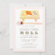 This stylish and modern " Let the good times roll" new year's eve party invitation features watercolored sushi on wood board with chopsticks on white background framed by a blush pink border. The reverse side features diagnol stripes in blush pink and faux gold. Change the background color on both front and the back and personalize it for your needs.