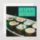 A fun birthday card with a neon font for sushi lovers. It has a photo of delicious sushi rolls.