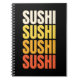 Simple colorful text design with "Sushi, Sushi, Sushi, Sushi" text in beige, yellow, orange and red colors