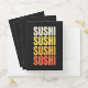 Simple colorful text design with "Sushi, Sushi, Sushi, Sushi" text in beige, yellow, orange and red colors