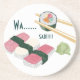 Japanese Cuisine Sushi Coasters - to change background color click customize - click edit - select last tool on drop down and choose any color shown or insert your own RGB hex code for your custom wedding color - to change font color select the text you wish to change and then click on the color box next to the "f" (font) symbol and change the font color to any color -