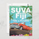 Suva, Fiji vintage vacation poster. Suva Classic old automobile travel poster. Classic car.